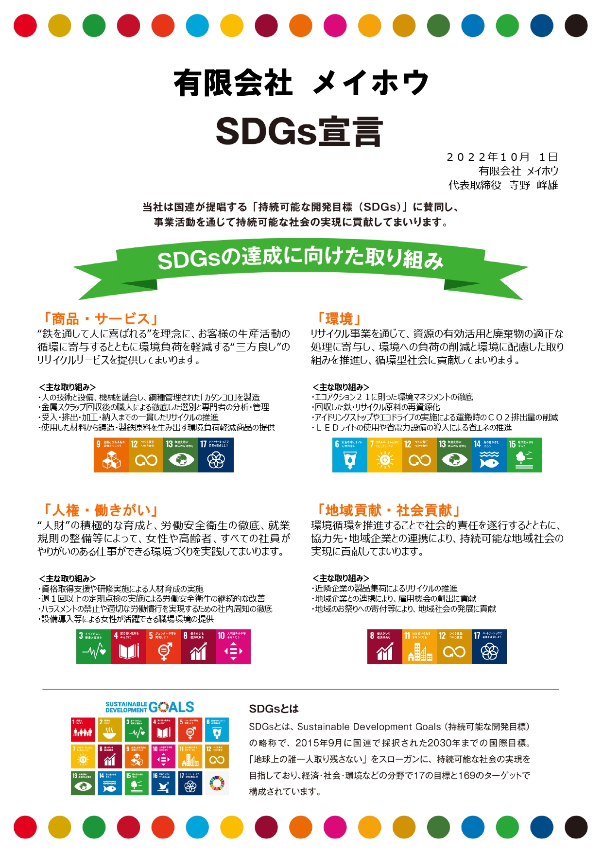 サステナブルな社会に貢献できるようSDGsの宣言を行いました。