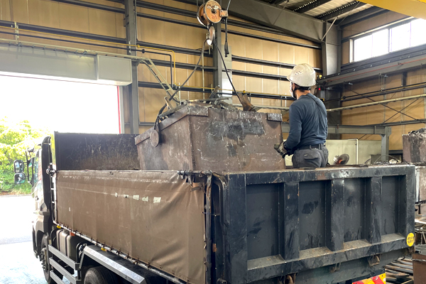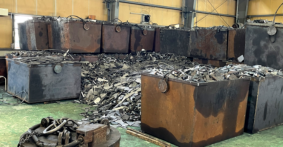 リサイクル企業として、新たなリサイクル可能品目を増やすために、故銑割機(油圧機工業製/ALP-1500)を導入しました。お客様の自社スクラップのリサイクル率向上に寄与できる故銑を製造しています